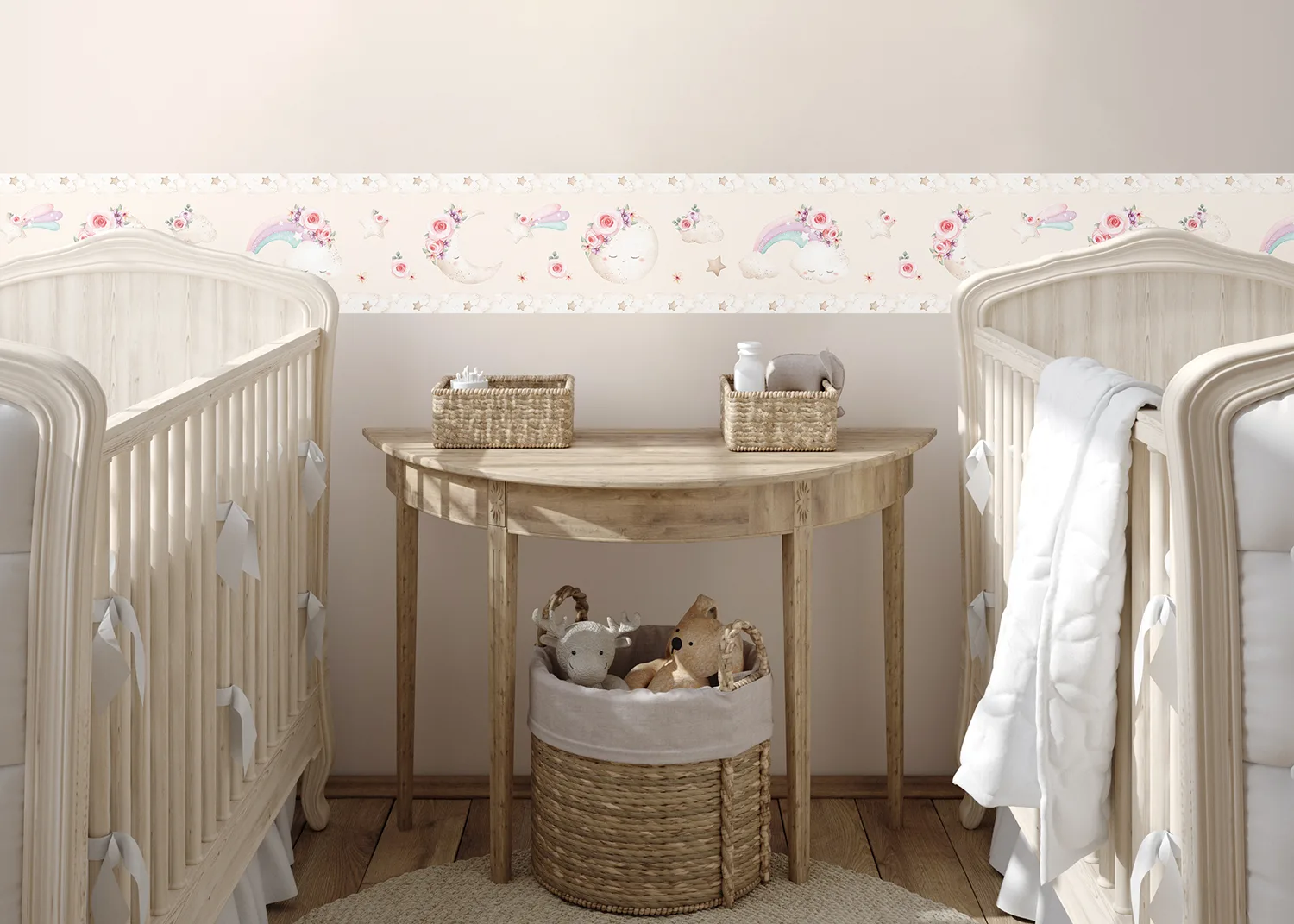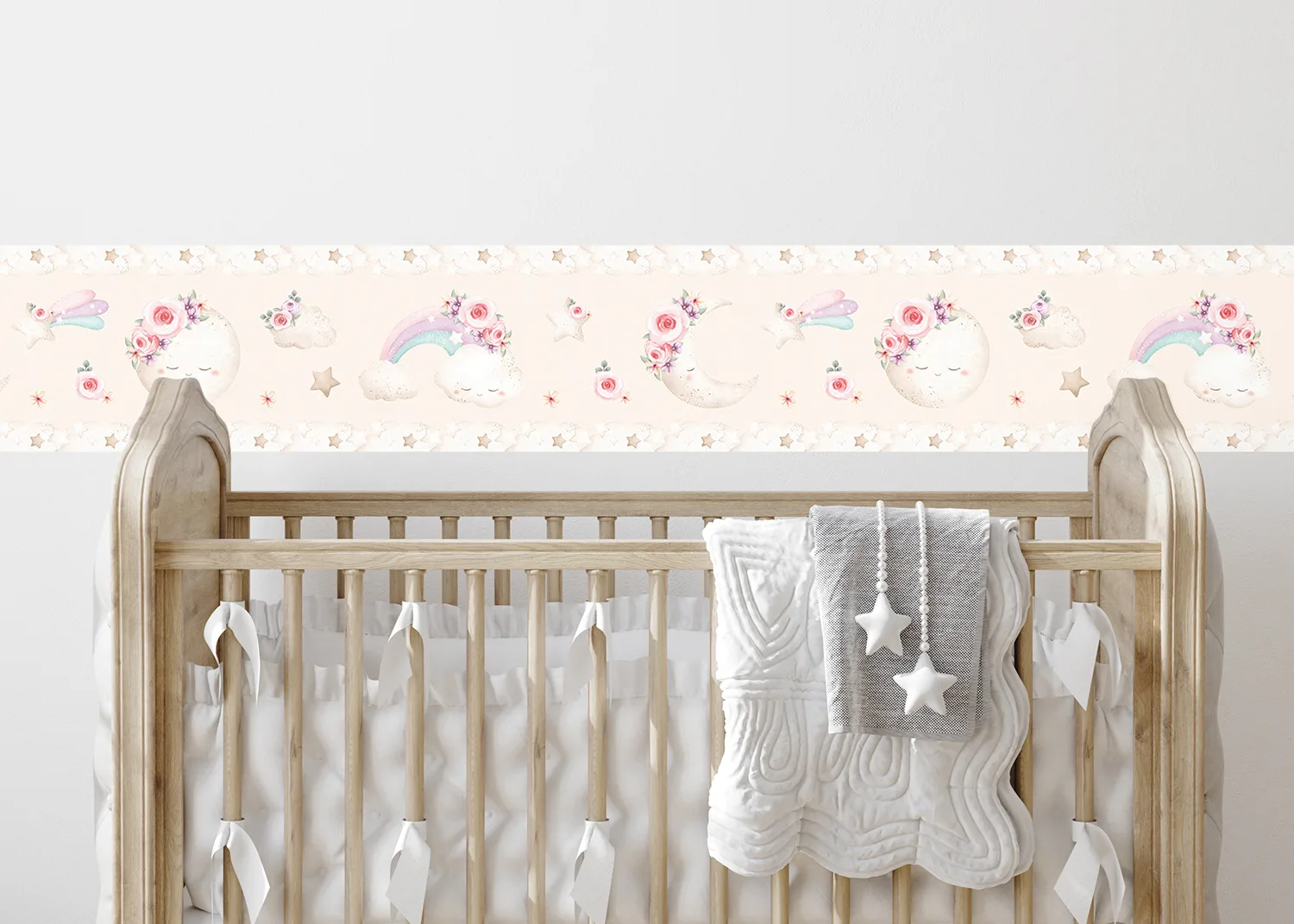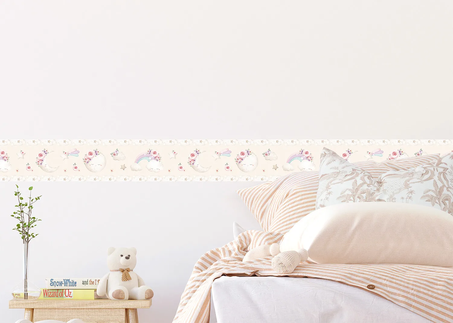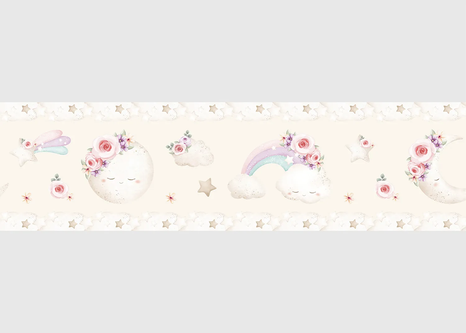 Dětská samolepící bordura na zeď Béžový Akvarelový Měsíc | 5 m x 13.8 cm | WBD 8045
