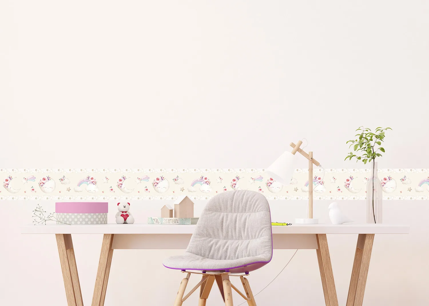 Díky svým vlastnostem přilnou naše bordury k jakémukoli rovnému, hladkému a čistému povrchu bez potíží. Proměňte svůj prostor s našimi okouzlujícími bordurami na zeď, v nichž se kombinuje kreativita, prémiová kvalita a ekologičnost.