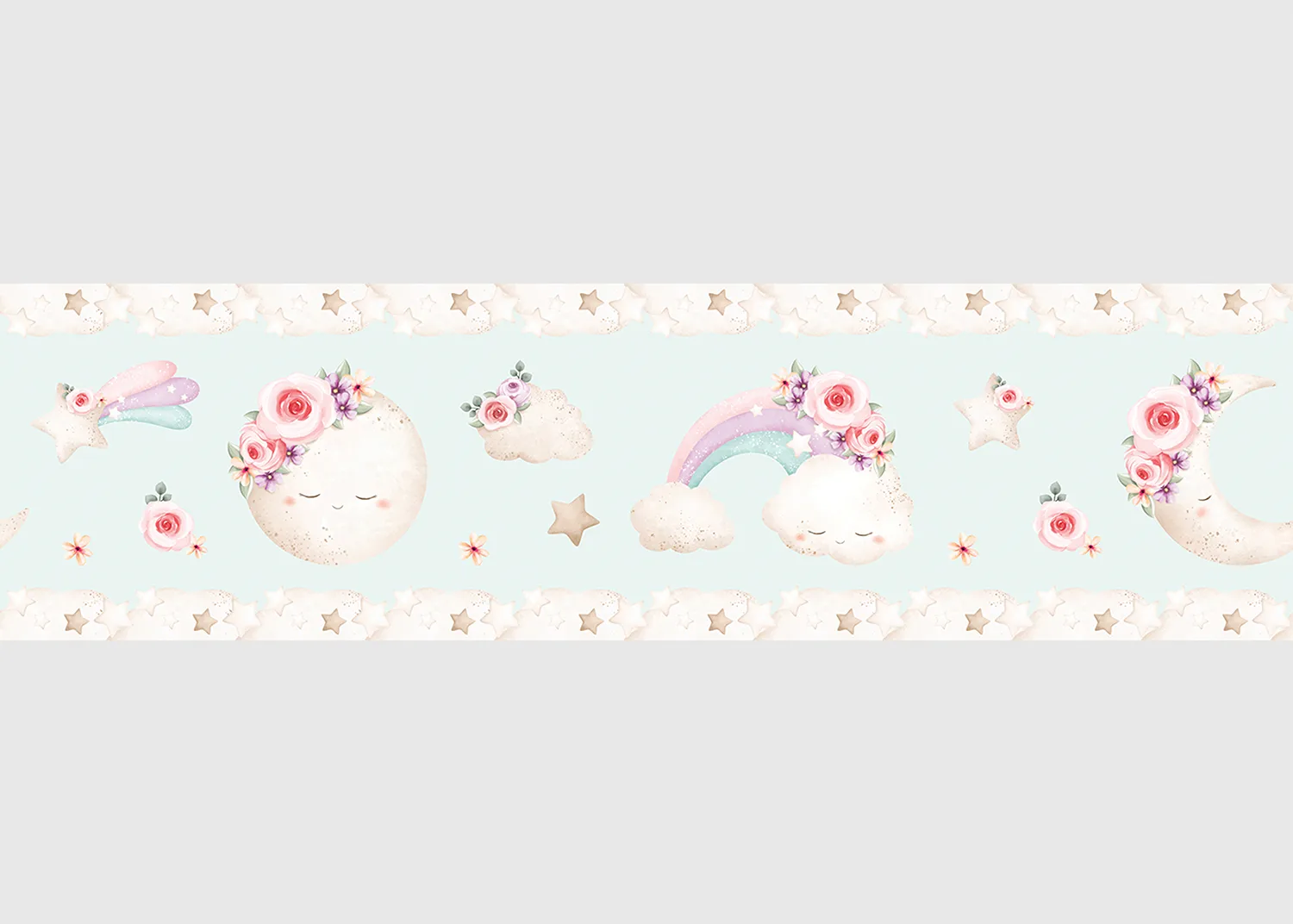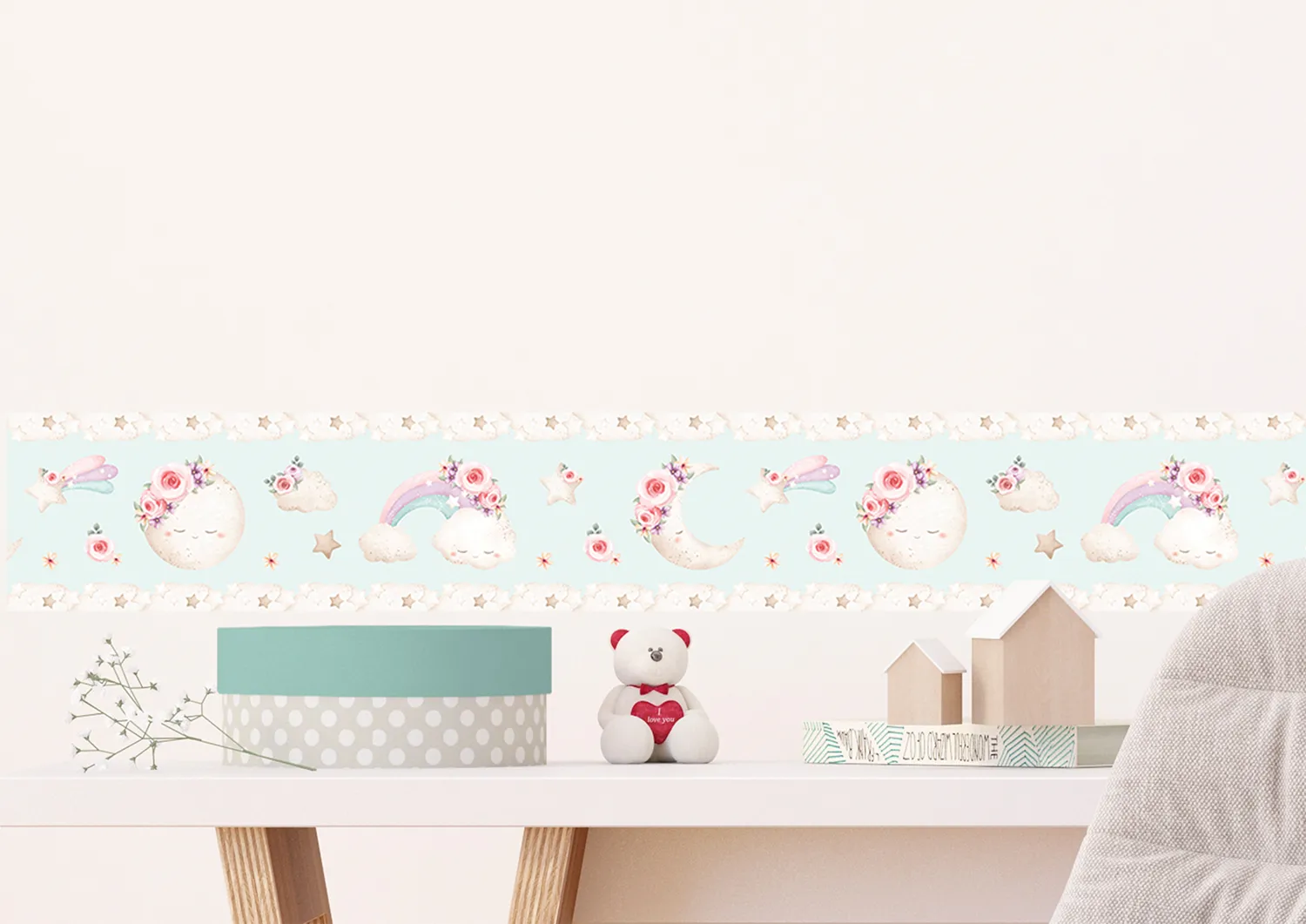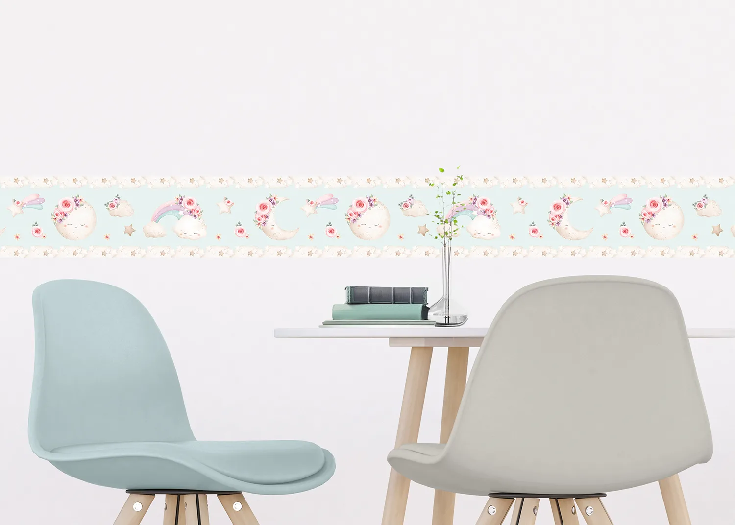 Dětská samolepící bordura na zeď Modrý Akvarelový Měsíc | 5 m x 13.8 cm | WBD 8047