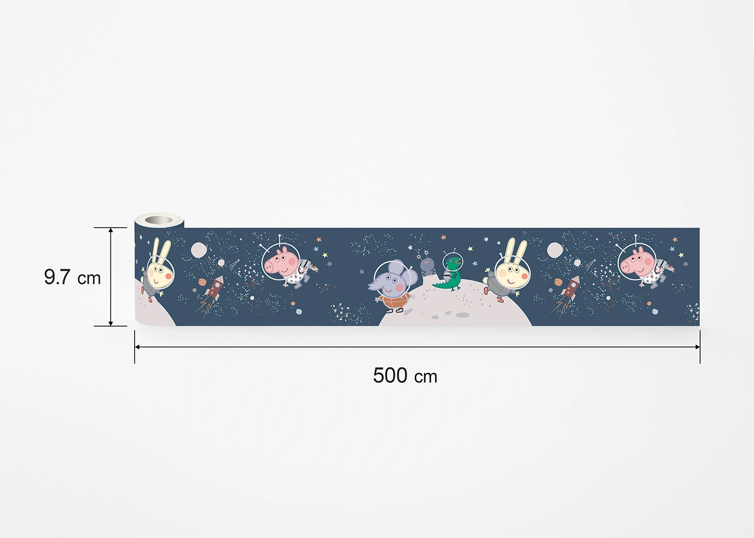 Dětská samolepící bordura na zeď Prasátko Peppa Výlet na Měsíc | 5 m x 9.7 cm | WBD 8149