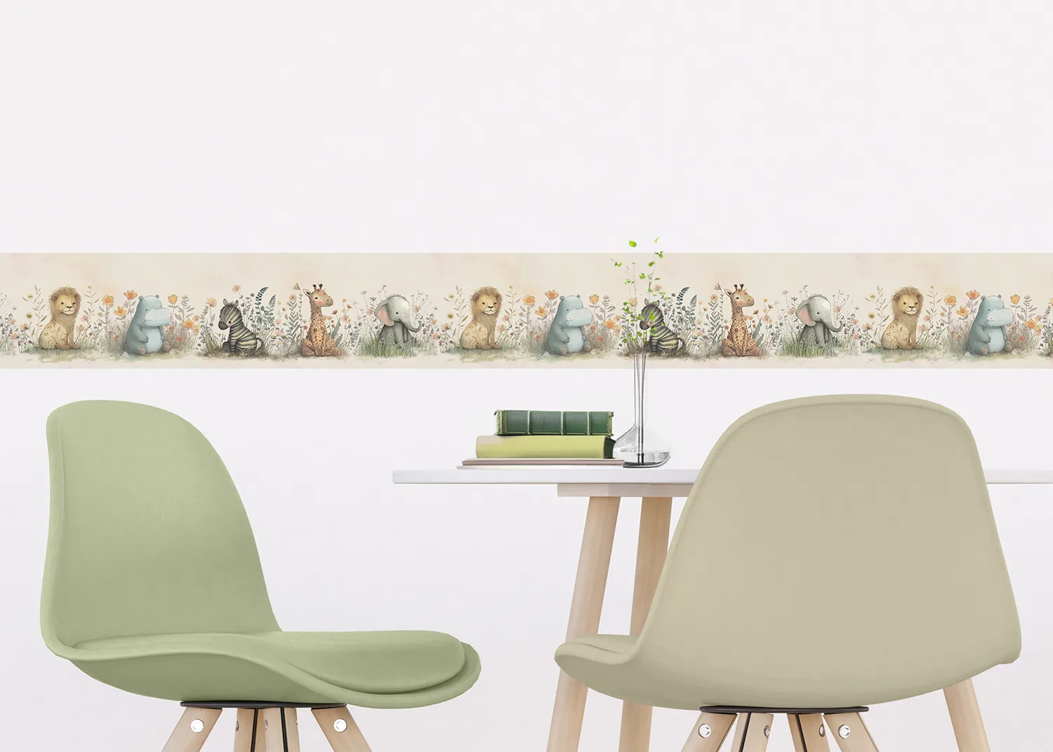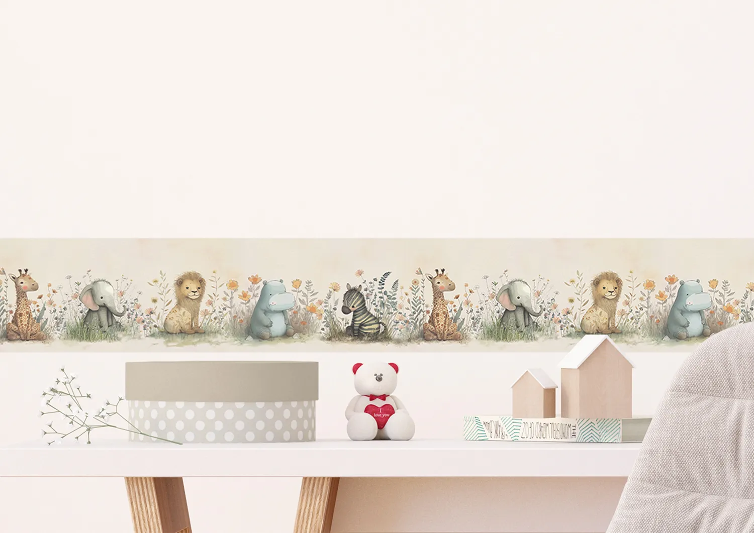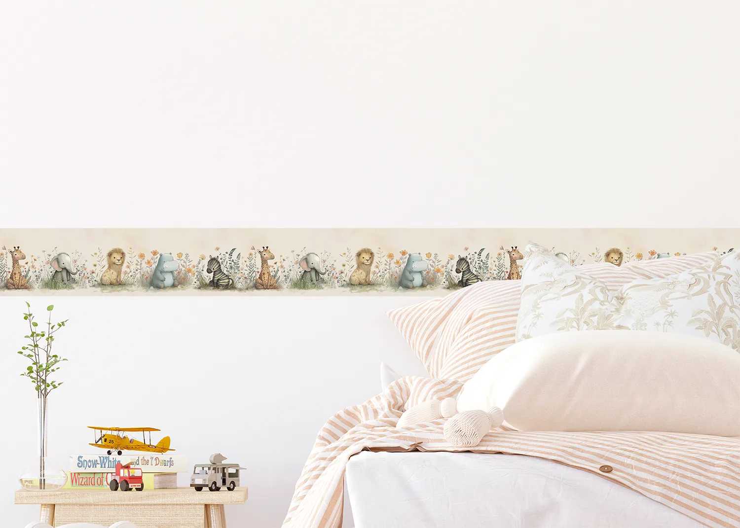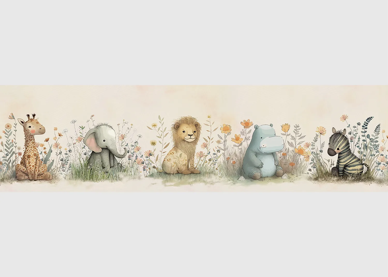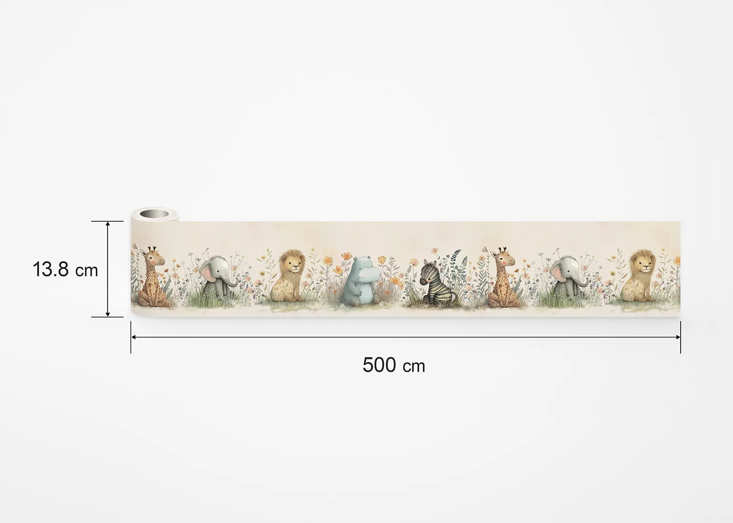 Dětská samolepící bordura na zeď Roztomilá Akvarelová Zvířata | 5 m x 13.8 cm | WBD 8467