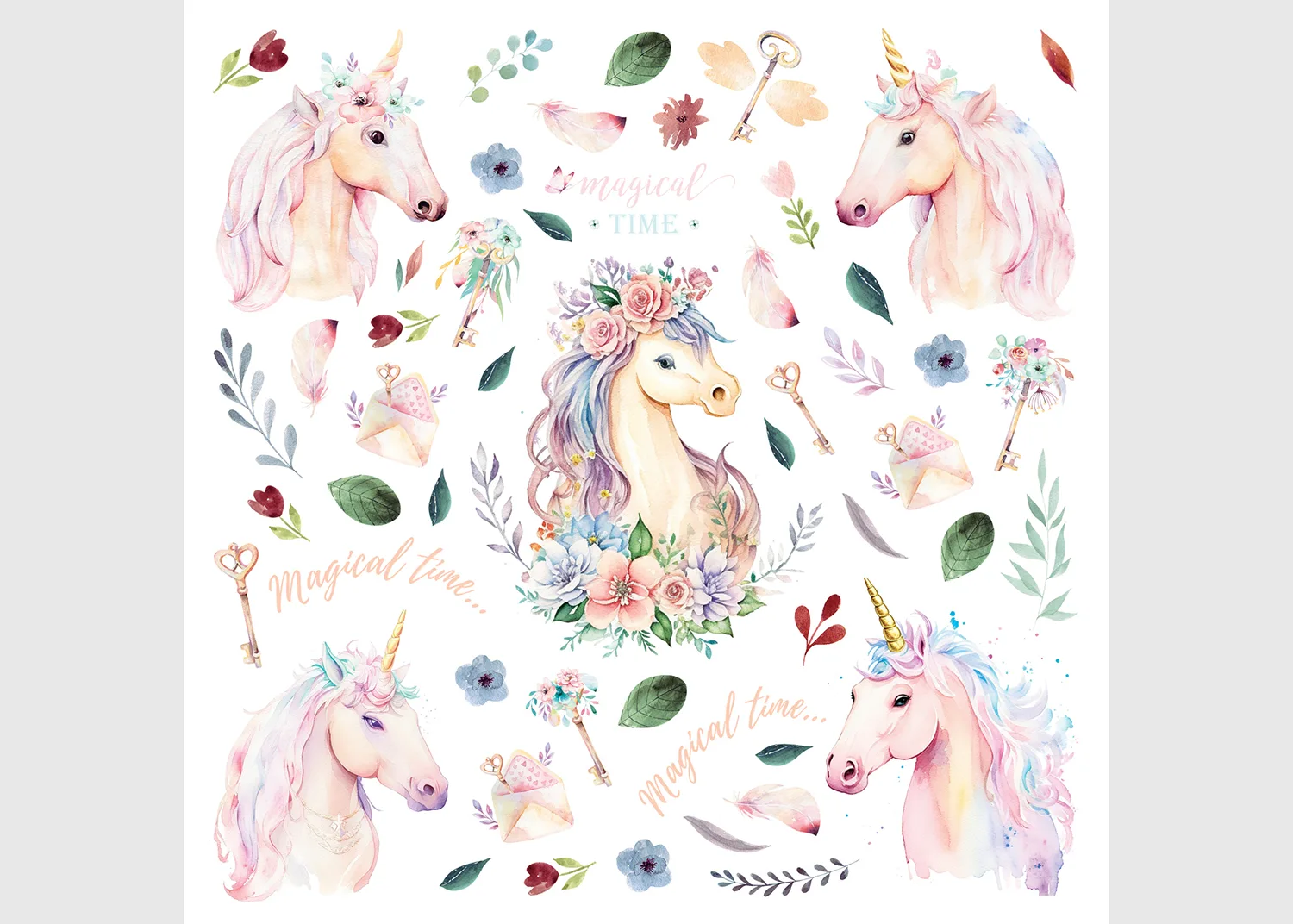 Dětská samolepka na zeď Akvarelový jednorožec | 30 x 30 cm | DKS 3935