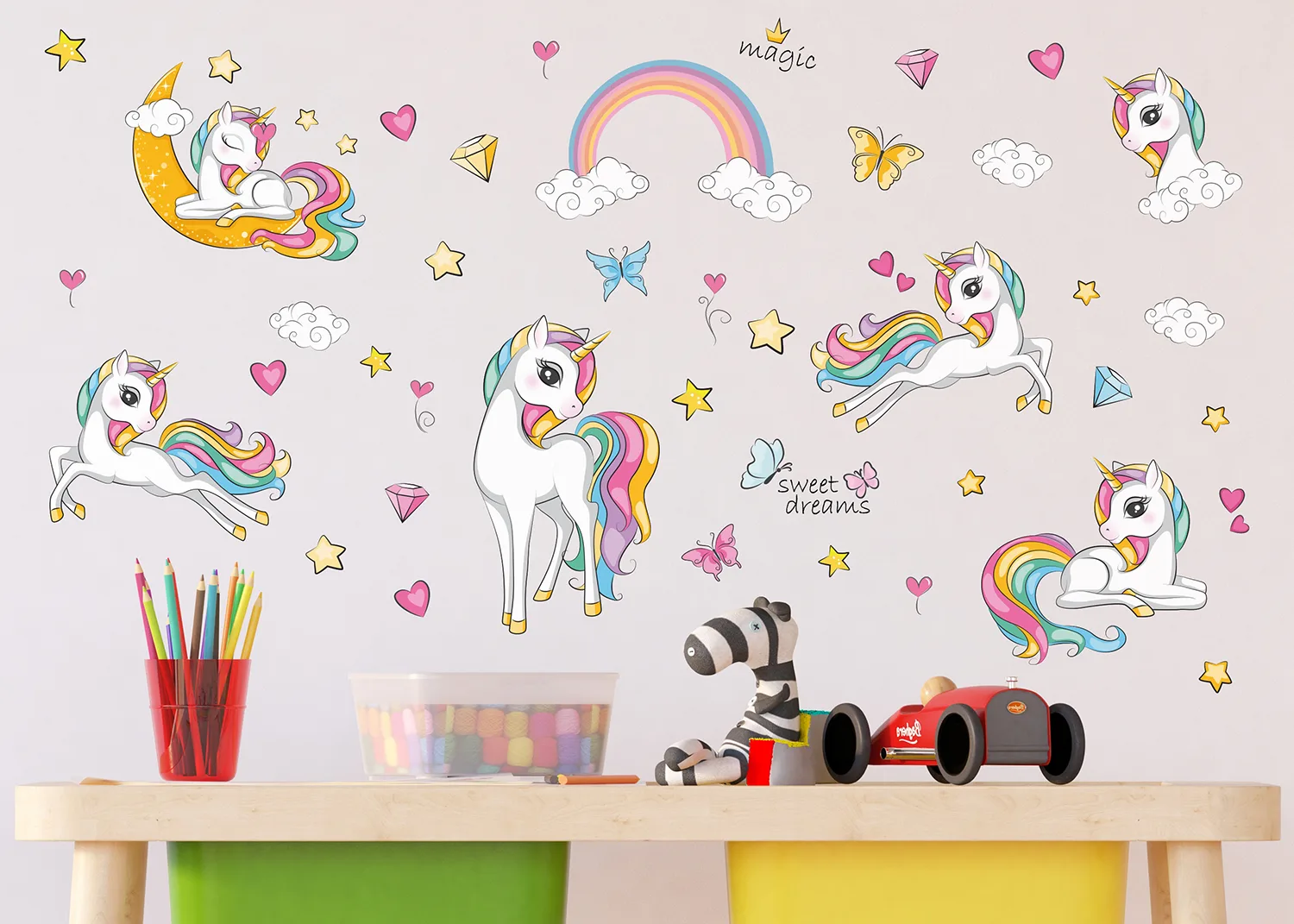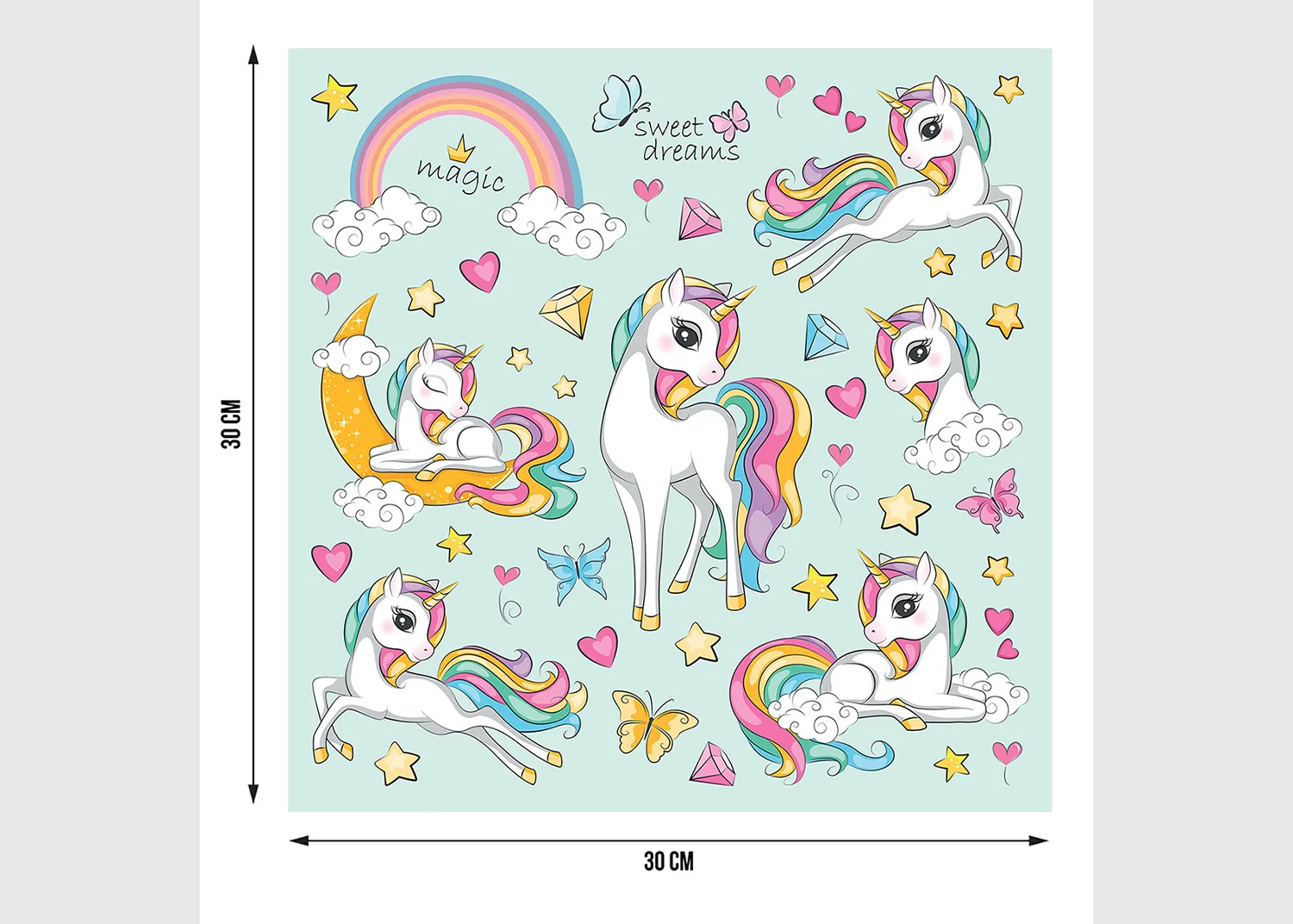 Dětská samolepka na zeď Magický jednorožec | 30 x 30 cm | DKS 3937