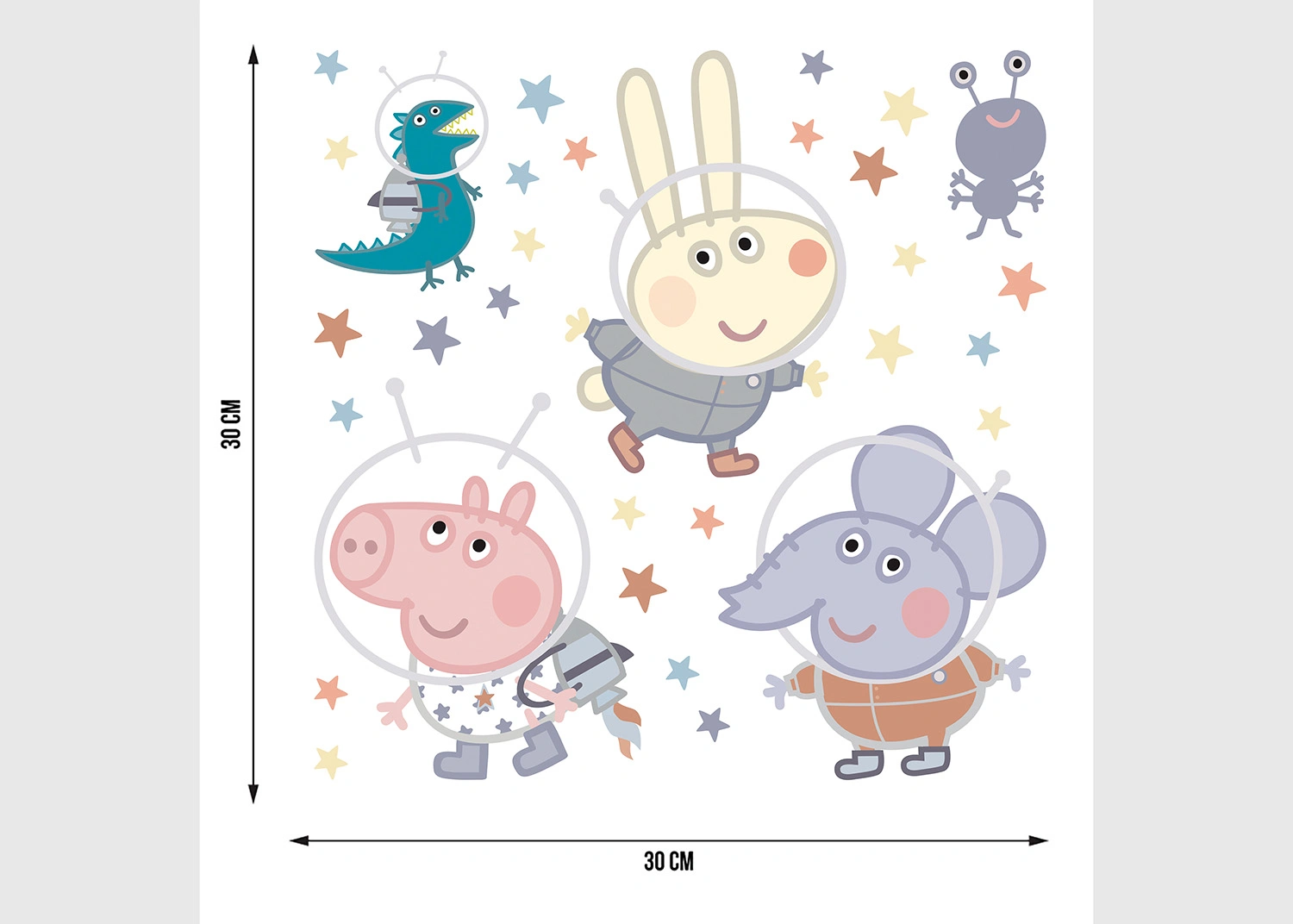 Dětská samolepka na zeď Prasátko Peppa Výlet na Měsíc | 30 x 30 cm | DKS 3835