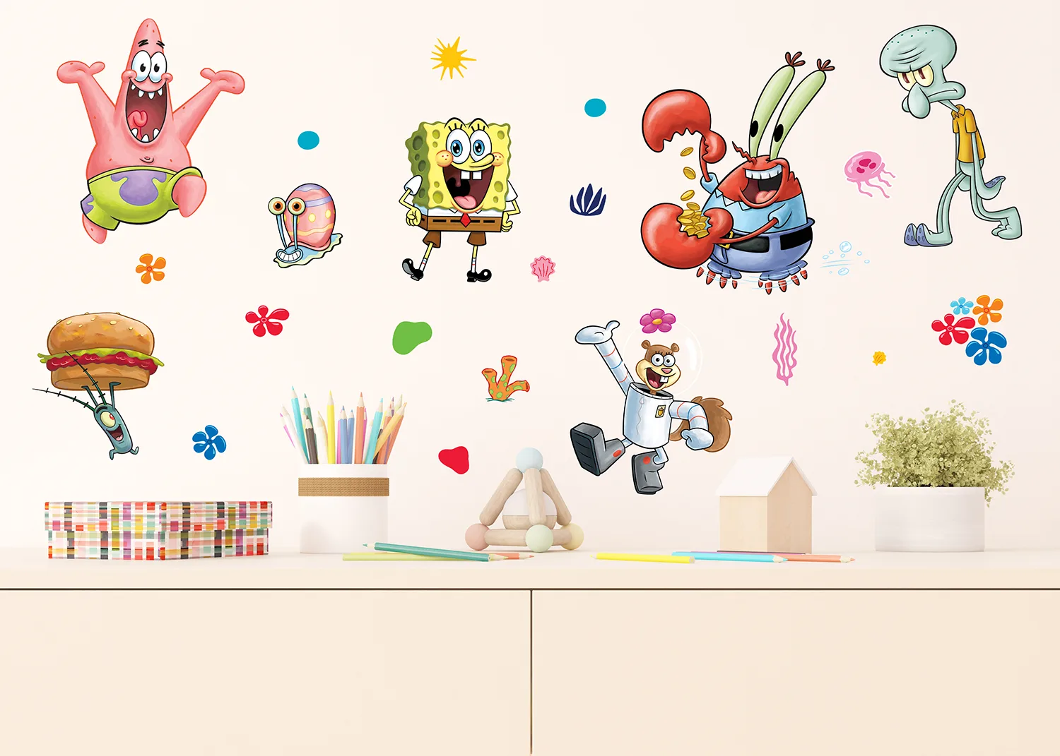 Dětská samolepka na zeď SpongeBob Zátiší bikin | 30 x 30 cm | DKS 3951