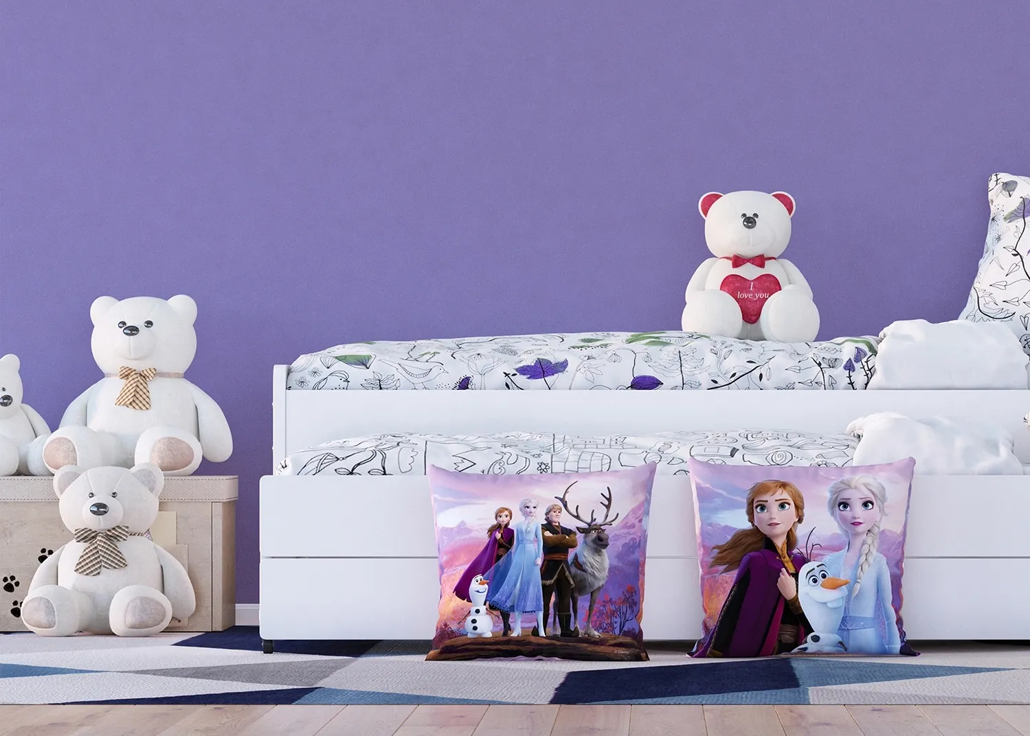 Our charming designs are tailored to captivate any child. Crafted with love, every cushion adds a sprinkle of magic to your child’s room. Alongside our cushions, explore our range of wall borders, murals and stickers to complement the theme seamlessly.