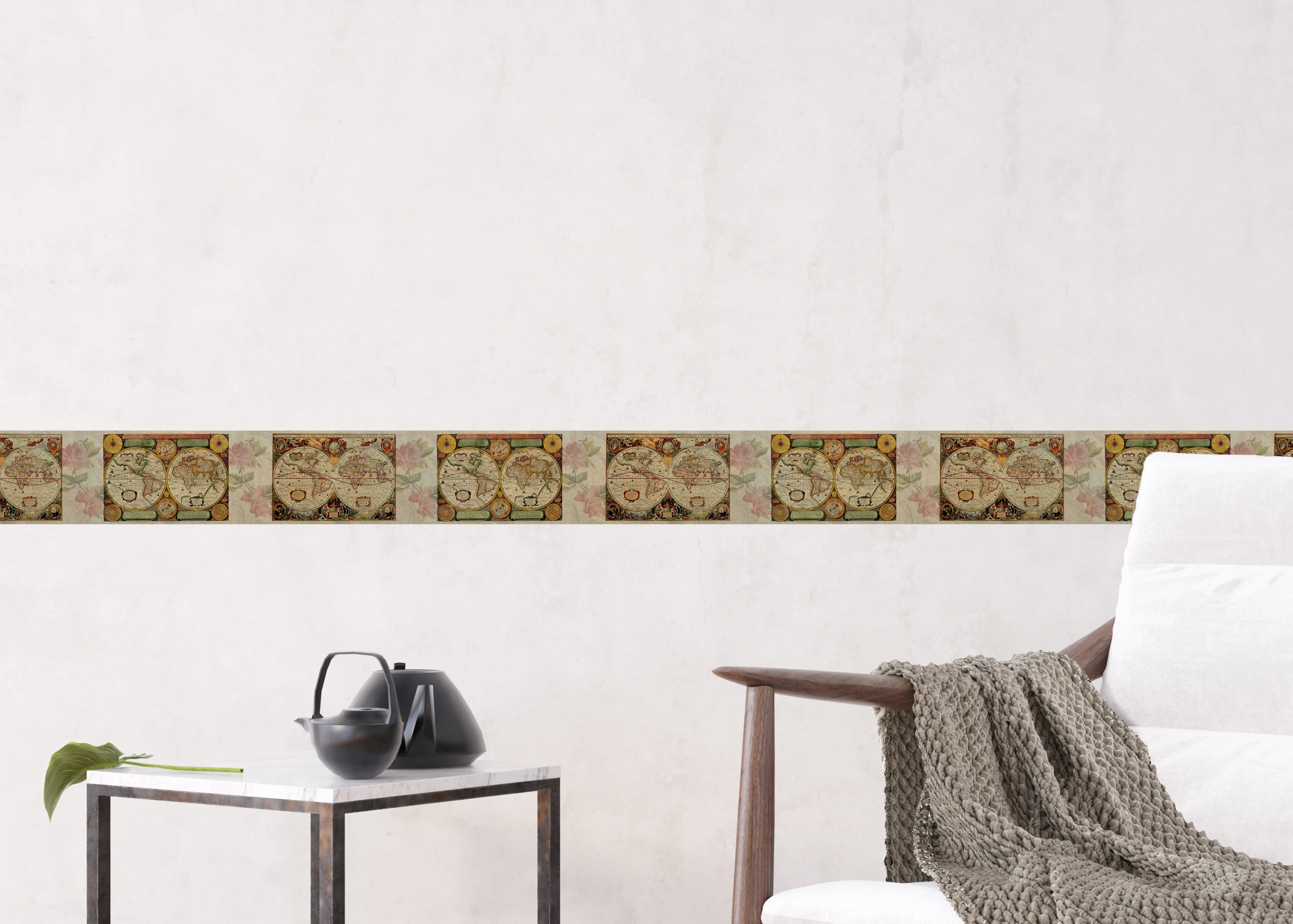 Samolepící bordura na zeď Mapa Světa | 5 m x 13.8 cm | WB 8220