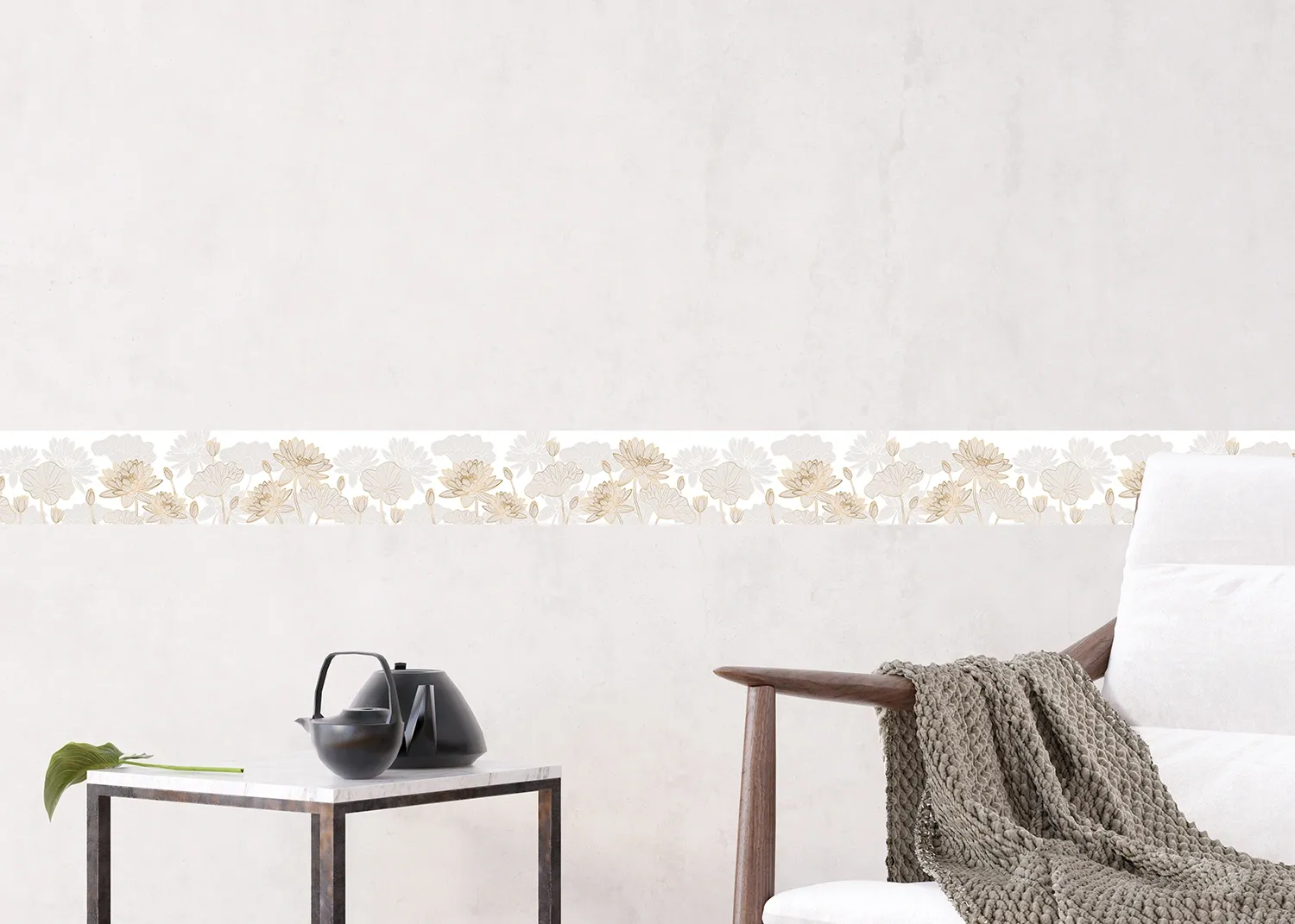 Bordura na zed‘ je skvělým a snadným způsobem, jak oživit jakýkoli interiér krásnými designy a užívat si úchvatný pohled z pohodlí vašeho domova.