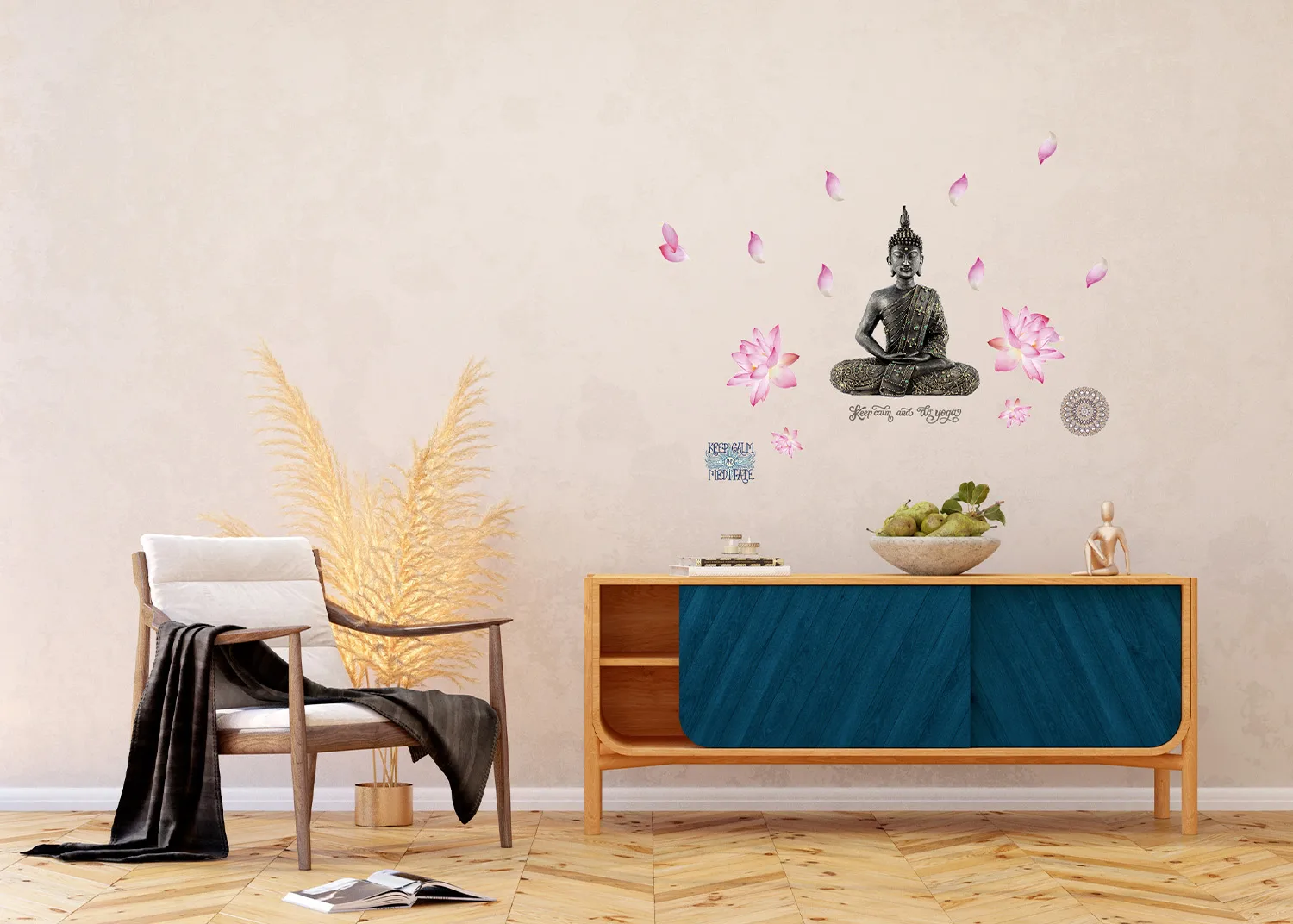 Samolepka na zeď 3D Meditující Buddha | 42.5 x 65 cm | SM 3461