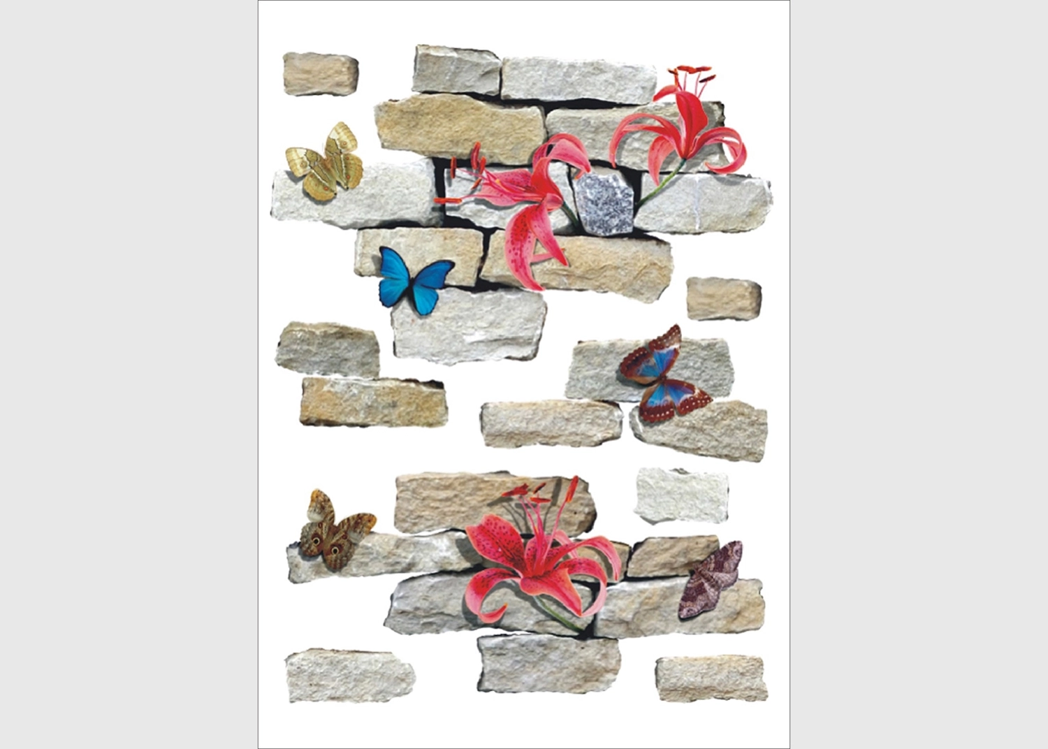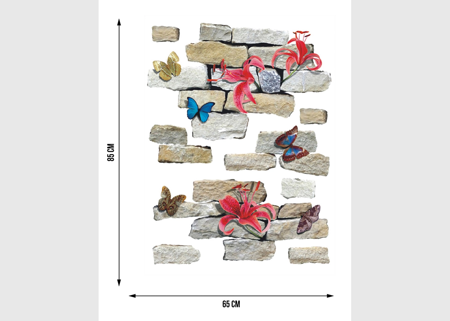 Samolepka na zeď Cihle a Květiny | 65 x 85 cm | F 1021