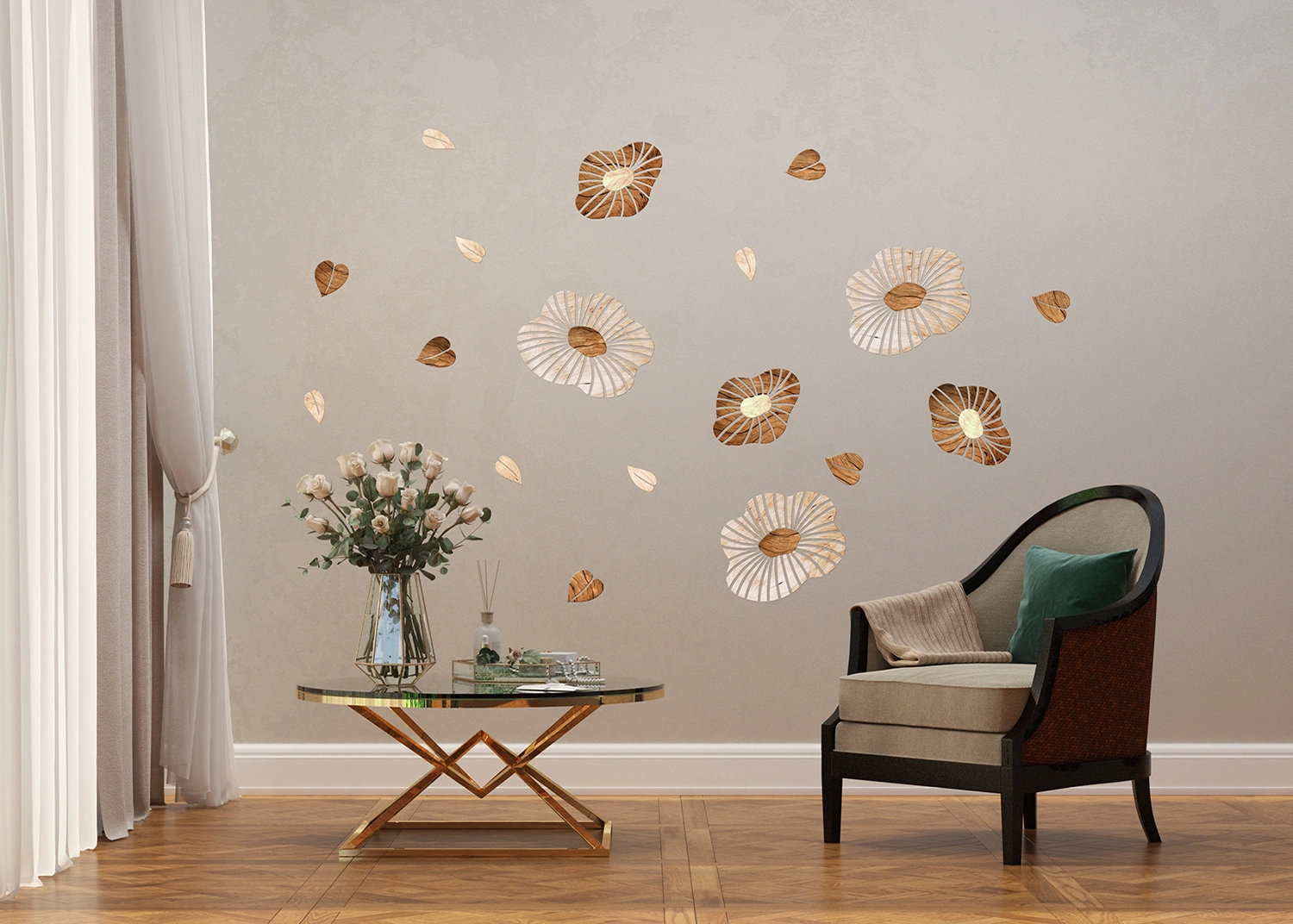 Samolepka na zeď Dřevěné květiny | 42.5 x 65 cm | SM 3445