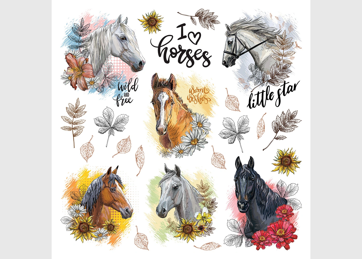 Samolepka na zeď Koně | 30 x 30 cm | SS 3887