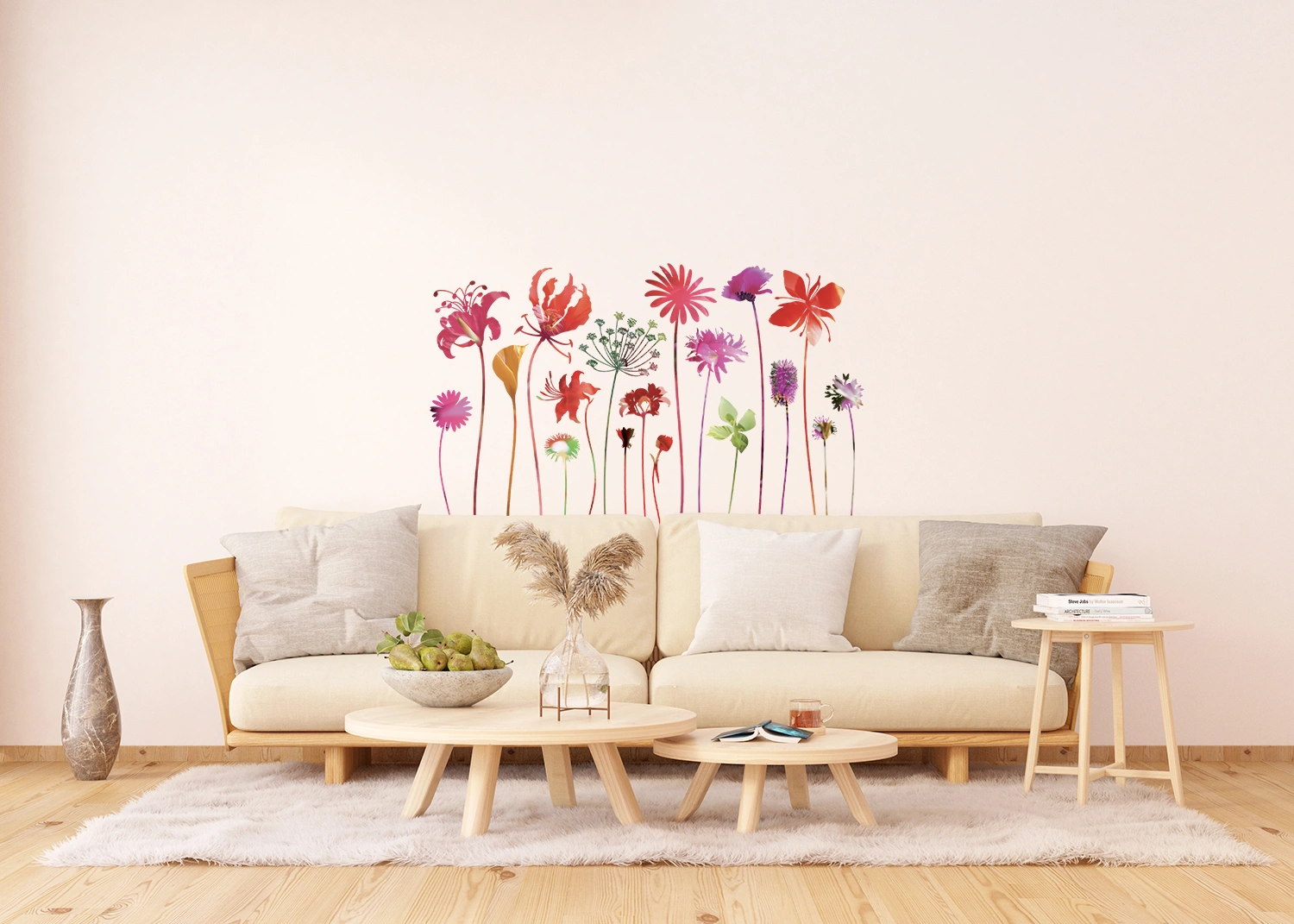 Samolepka na zeď Květiny s Dlouhými Stonky | 65 x 85 cm | F 0444