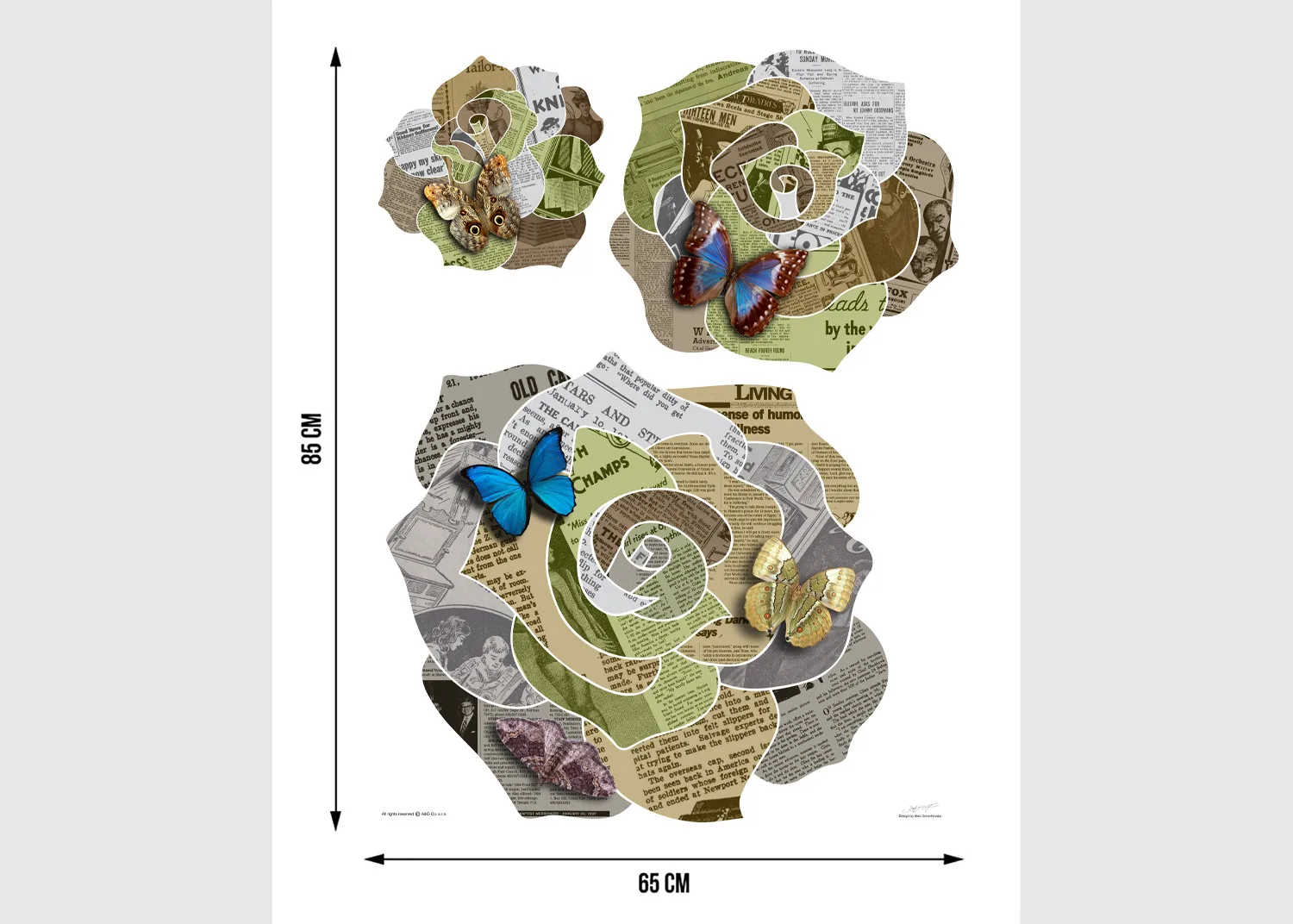 Samolepka na zeď Papírové Květiny z Kašírovací Hmoty | 65 x 85 cm | FL 1019