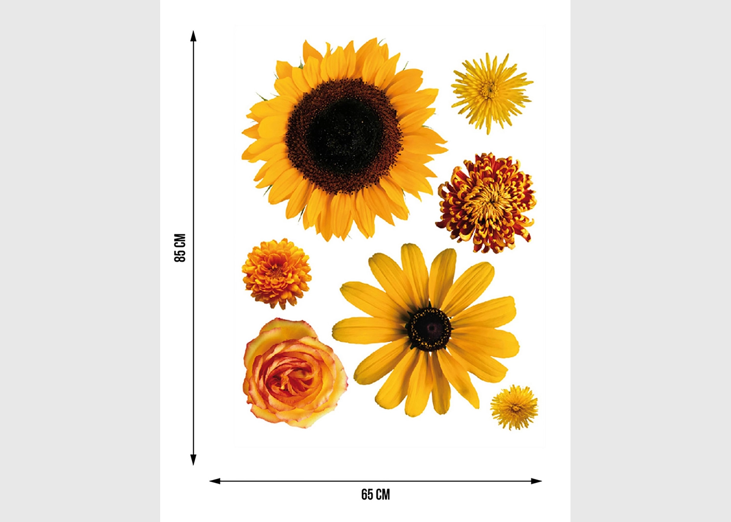 Samolepka na zeď Žluté Květy a Slunečnice | 65 x 85 cm | F 0408