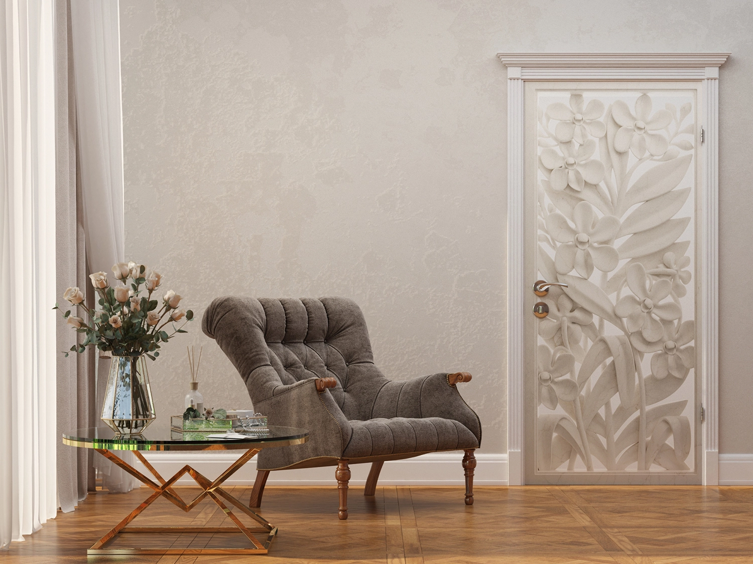 Vliesová fototapeta na zed‘ 3D Květinový Reliéf | 202 x 90 cm | FTNV 2952