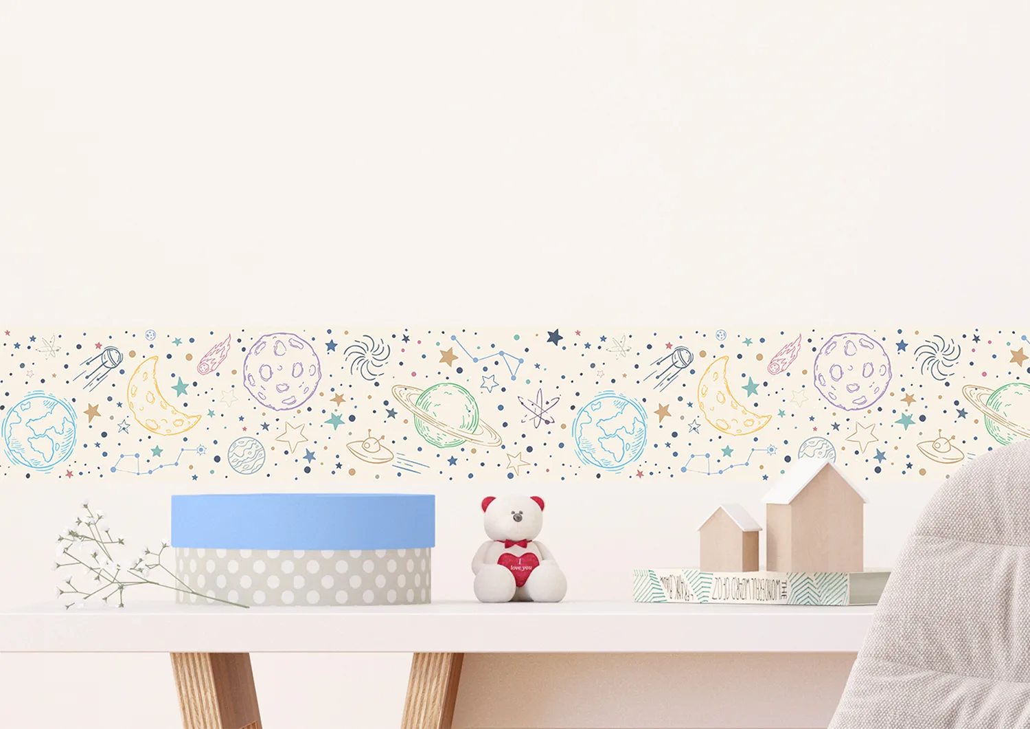 Discover a wide range of themes and styles created to captivate any child. Each design is made with love by our passionate team to add magic and excitement to your child’s room. Alongside our kids wall borders, explore our range of textile products, wall stickers, and murals to complement the theme seamlessly.